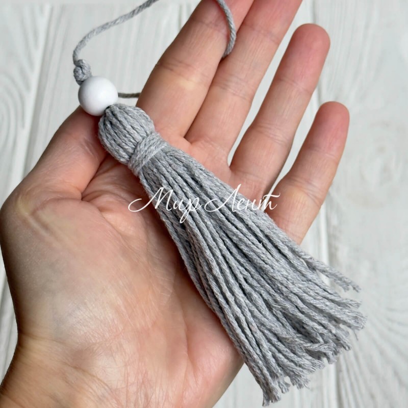 Кисточка декоративная с хлопка (D30196), 22 см, светло-серая, упаковка 10 шт.