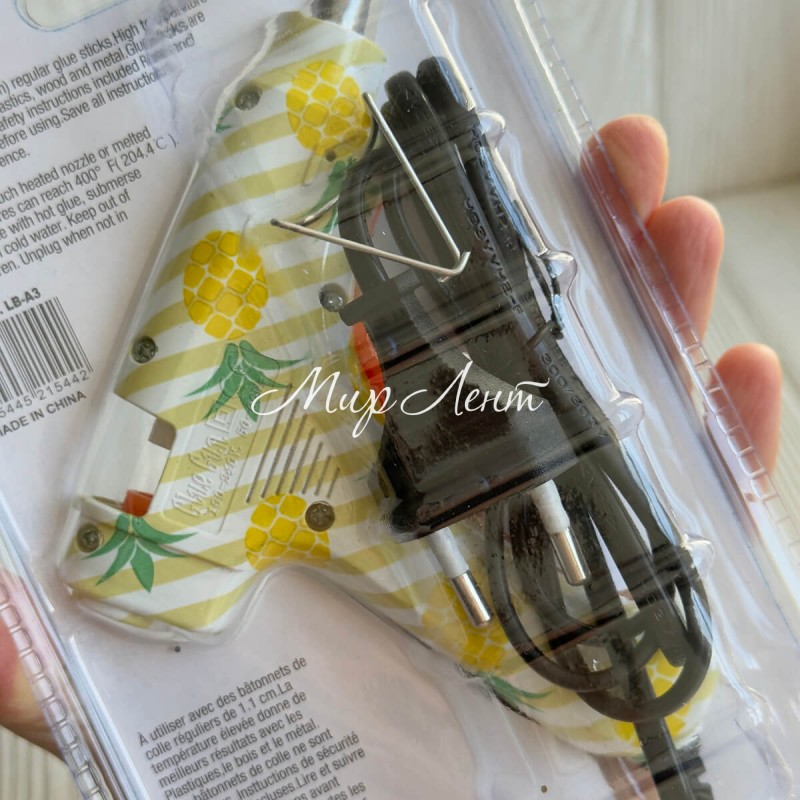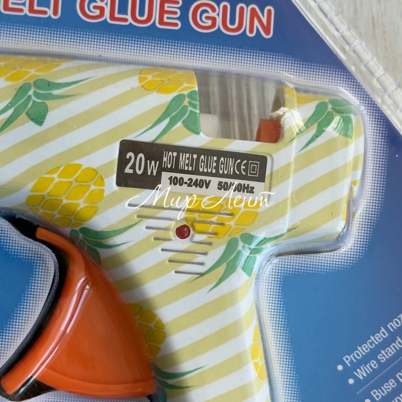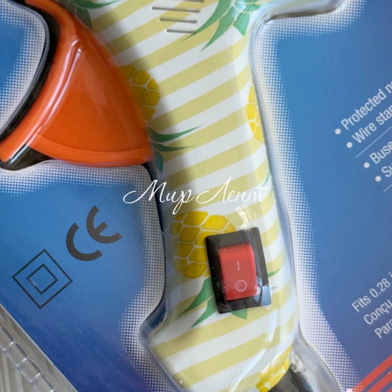 Клеевой термопистолет с выключателем с рисунком (Lanben), 20 W, под стержни 7 мм, белый с ананасами, шт.