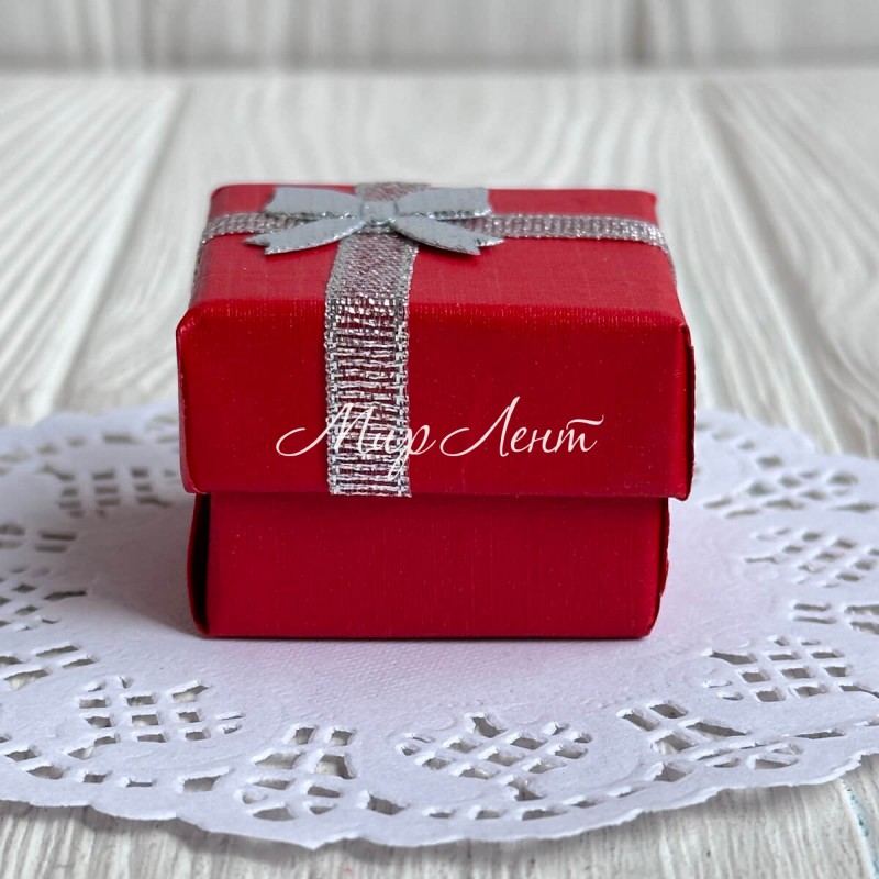 Коробочка для украшений квадратная, 4х4х3 см, красная, с парчовой ленточкой, 1 шт.