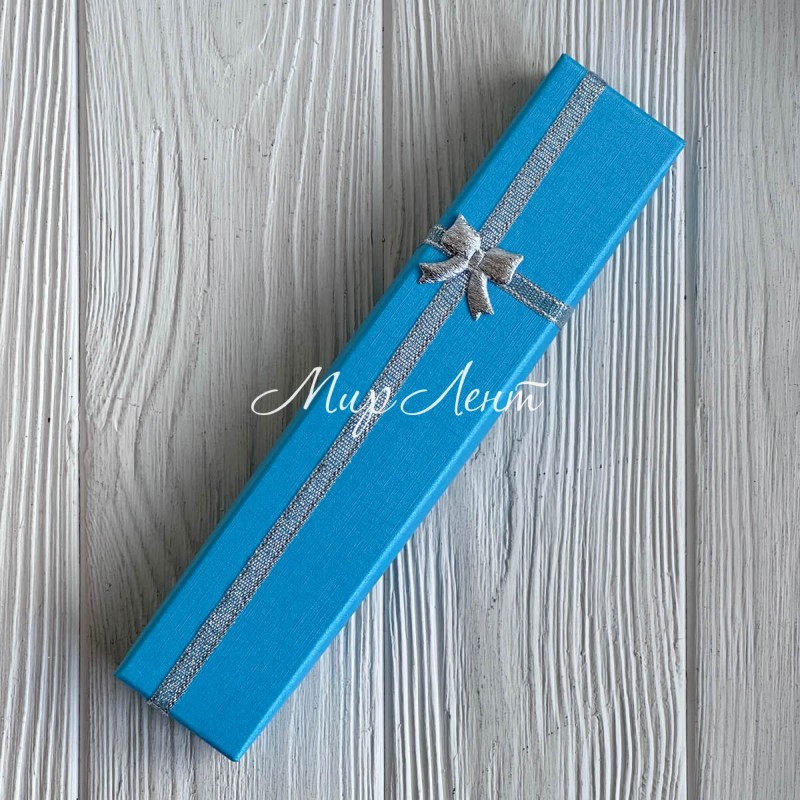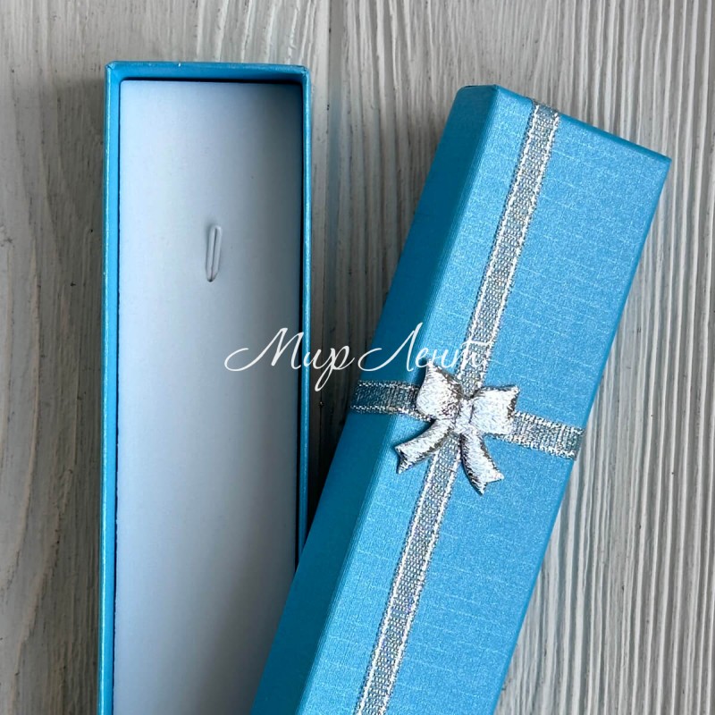 Коробочка для украшений прямоугольная, 21х4,3 см, голубая, с парчовой ленточкой, 1 шт.