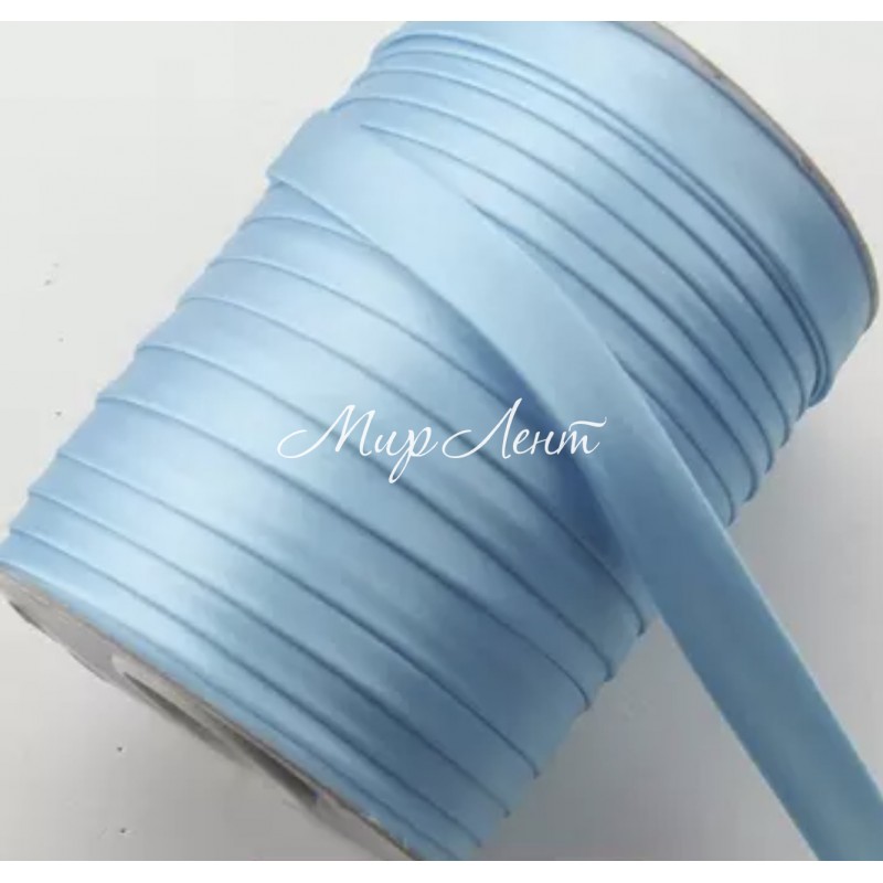 Косая бейка атласная, 1,5 см, голубая, рулон 90 м
