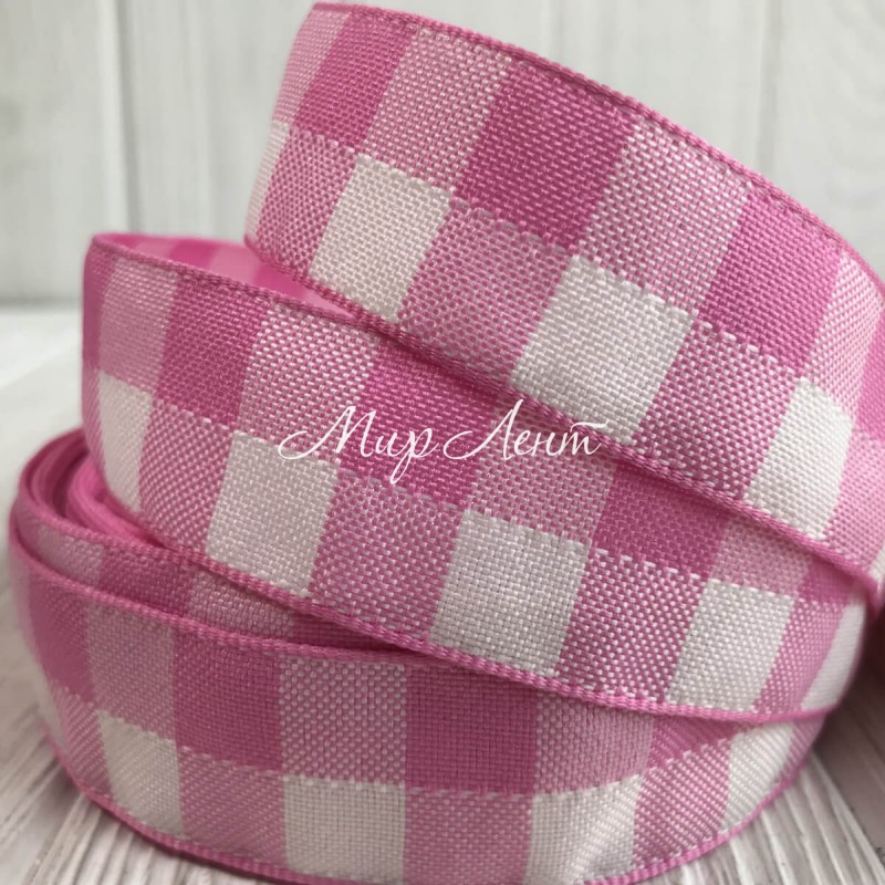 Котоновая лента крупная клетка, 1,5 см, розовая, рулон 18 м