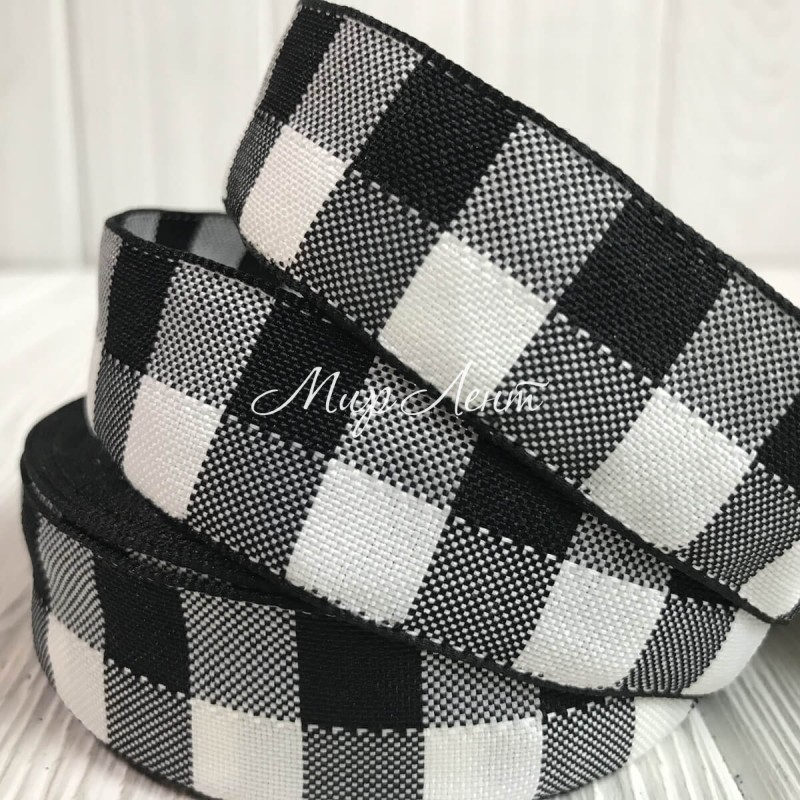 Котоновая лента крупная клетка, 2,5 см, черная, рулон 18 м