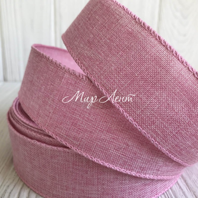 Котоновая лента с проволочным кантом, 3,8 см, розовая, рулон 23 м