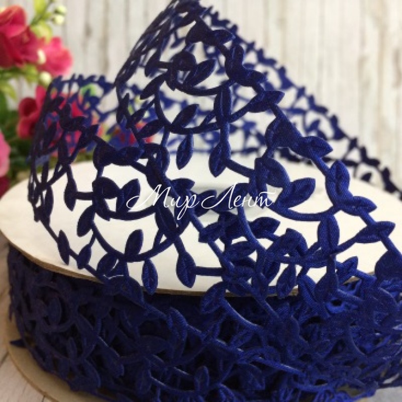 Кружевная лента Лавель, 3 см, темно-синий, рулон 20 м