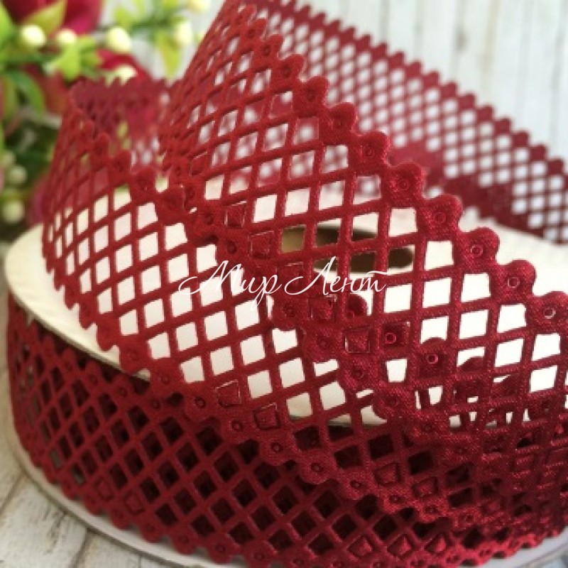 Кружевная лента сеточка, 2 см, бургунди, рулон 20 м