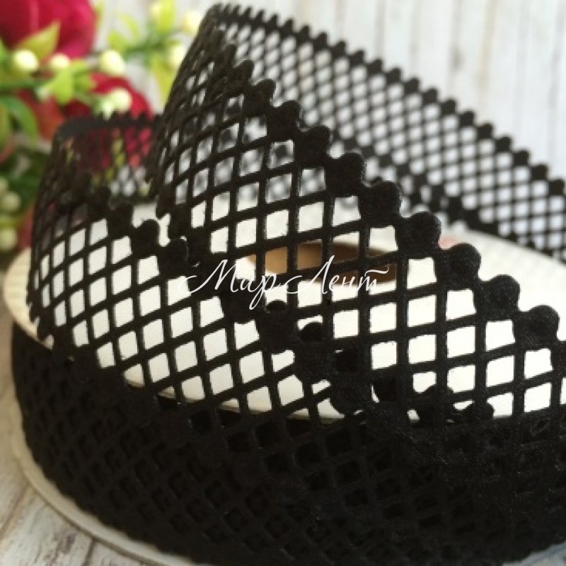 Кружевная лента сеточка, 2 см, черный, рулон 20 м