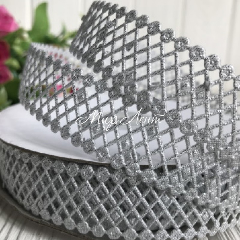 Кружевная лента сеточка, 2 см, серебро, рулон 20 м