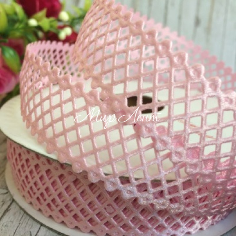 Кружевная лента сеточка, 2 см, светло-розовый, рулон 20 м