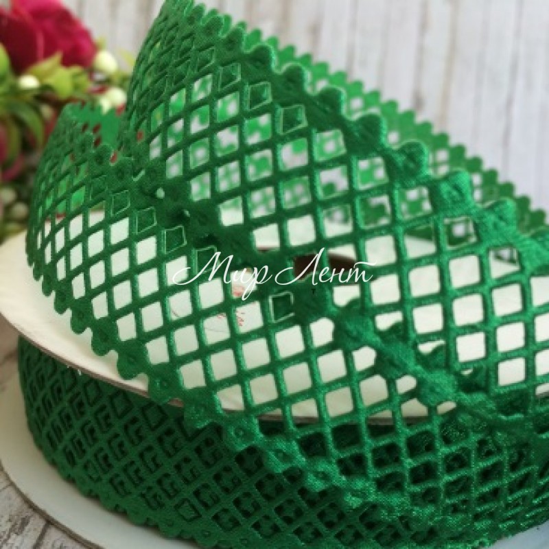 Кружевная лента сеточка, 2 см, зеленый, рулон 20 м