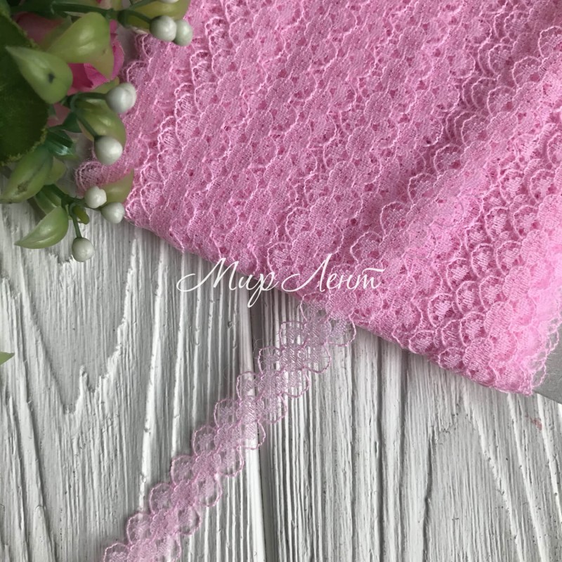 Кружево Амели (нестрейчевое), 1,5 см, розовый, рулон 16,5 м