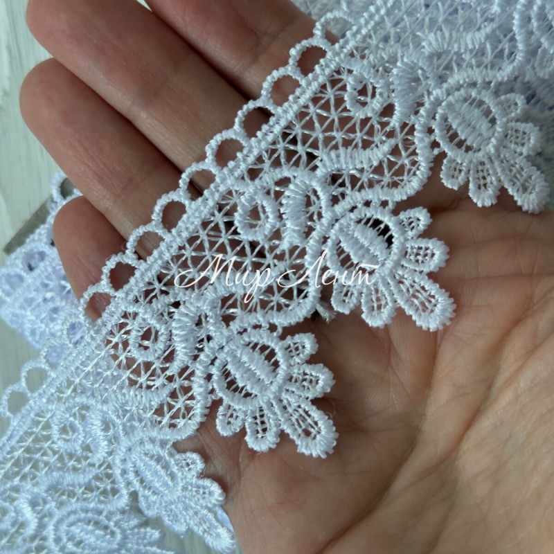 Кружево макраме (D30218), 5 см, белое, рулон 9 м