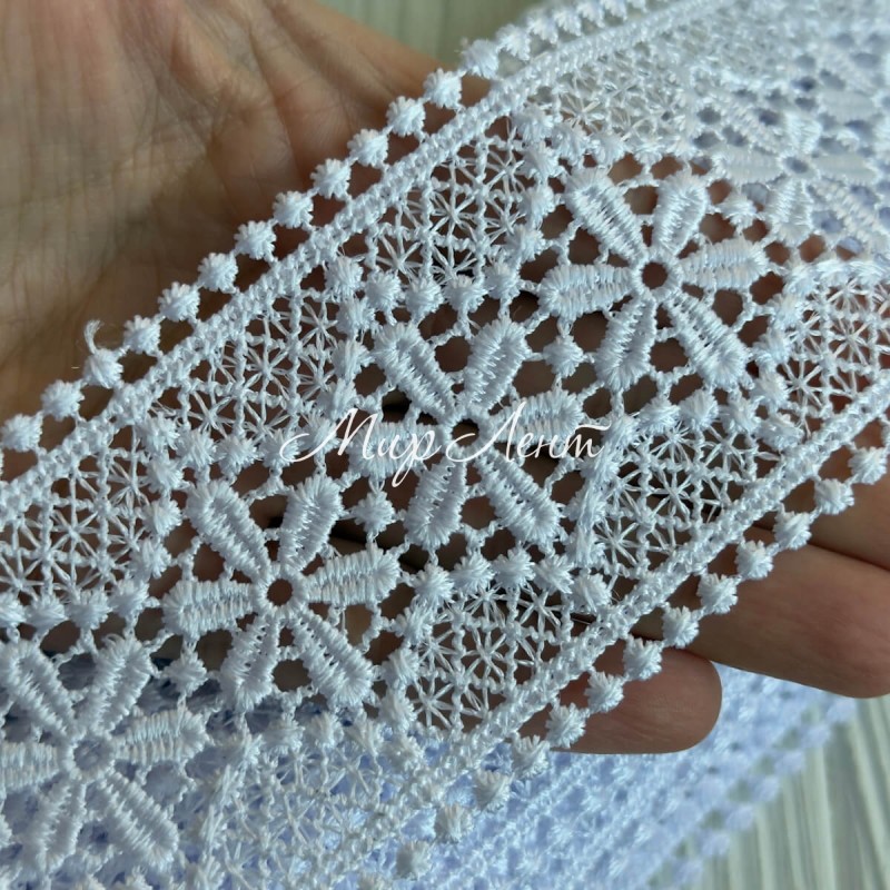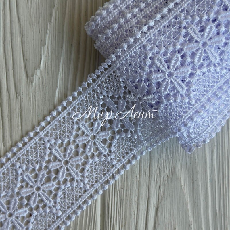 Кружево макраме (D30223), 6 см, белое, рулон 9 м