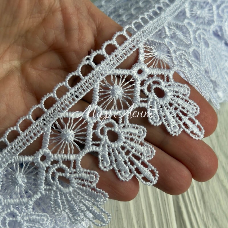 Кружево макраме (D30227), 5,5 см, белое, рулон 9 м
