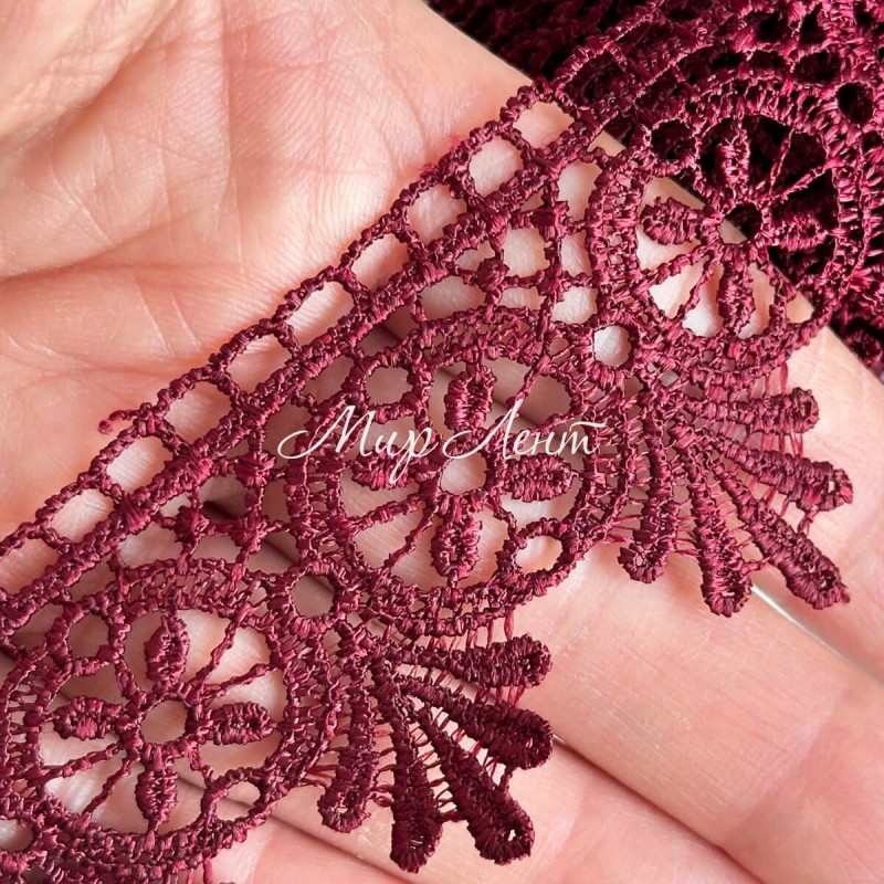 Кружево макраме Эвелин, 4 см, бордовое, рулон 9 м