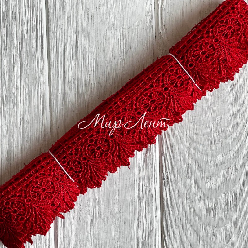 Кружево макраме Эвелин, 4 см, красное, рулон 9 м