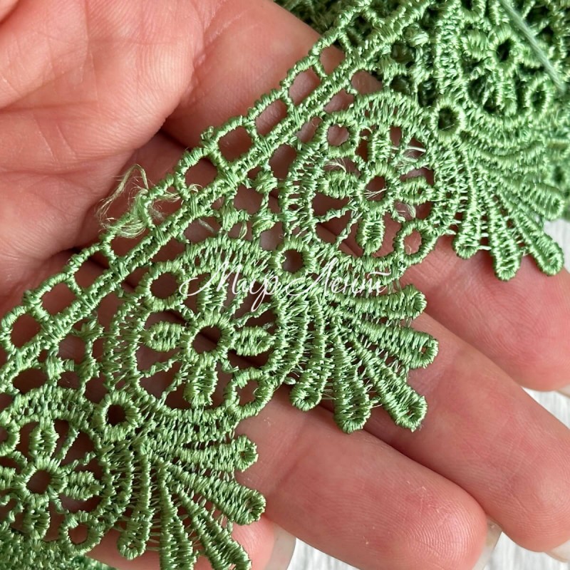 Кружево макраме Эвелин, 4 см, ярко-зеленое, рулон 9 м