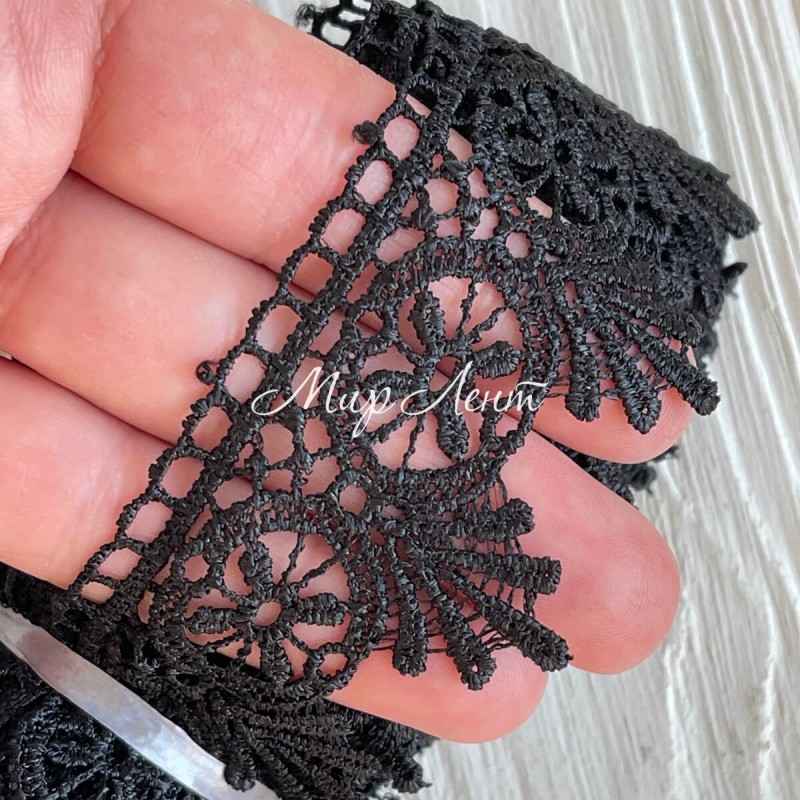 Кружево макраме (КМ-7), 4 см, черное, рулон 9 метров