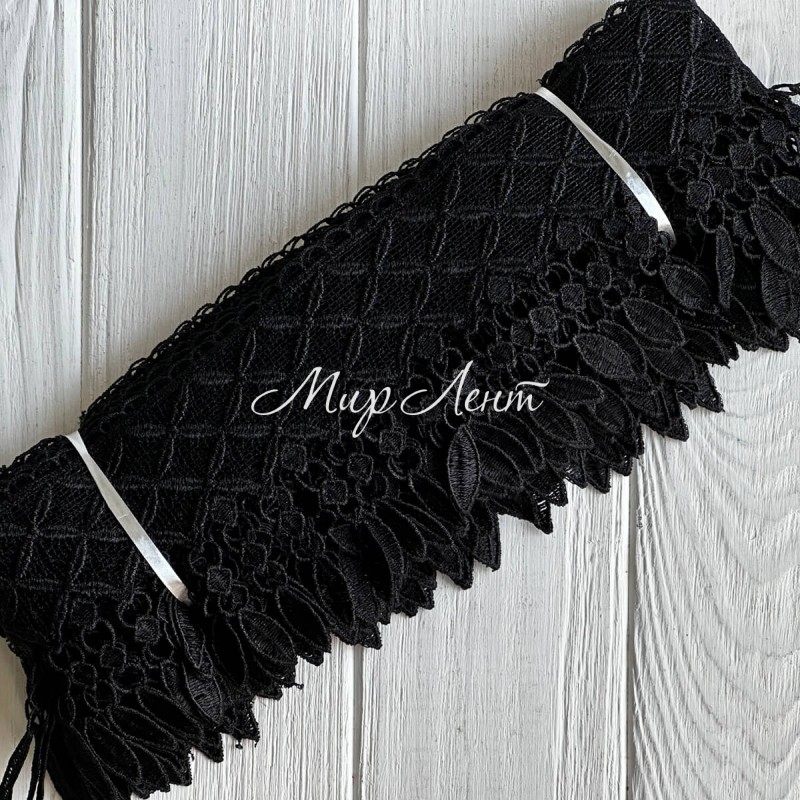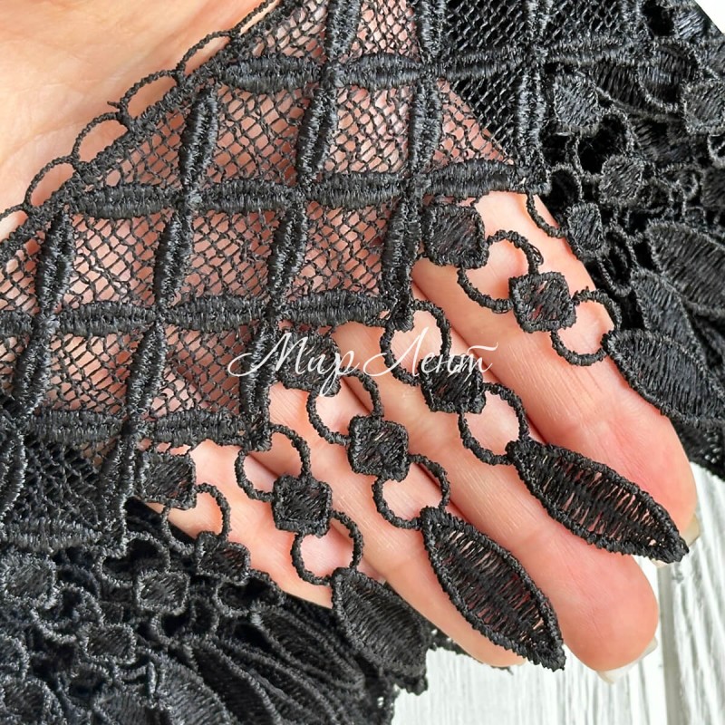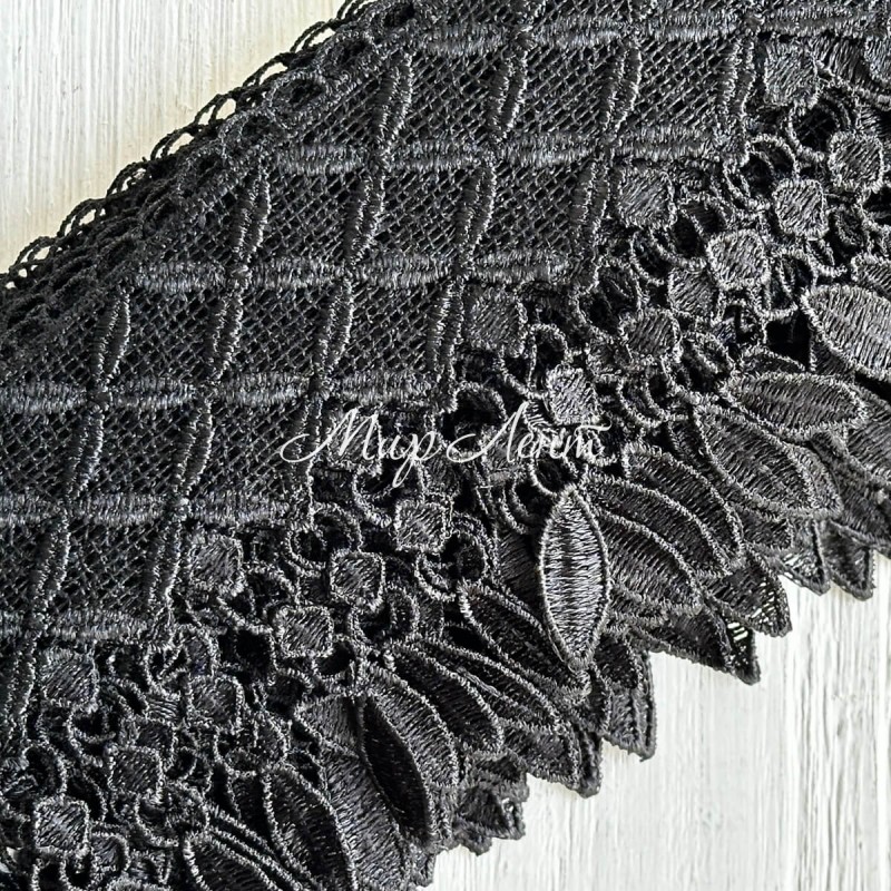 Кружево макраме Лили, 11 см, черное, рулон 9 м