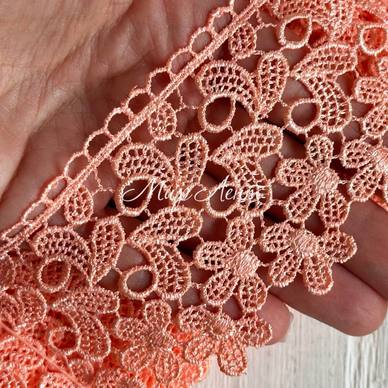 Кружево макраме Оливия, 6,5 см, розово-персиковый, рулон 9 м