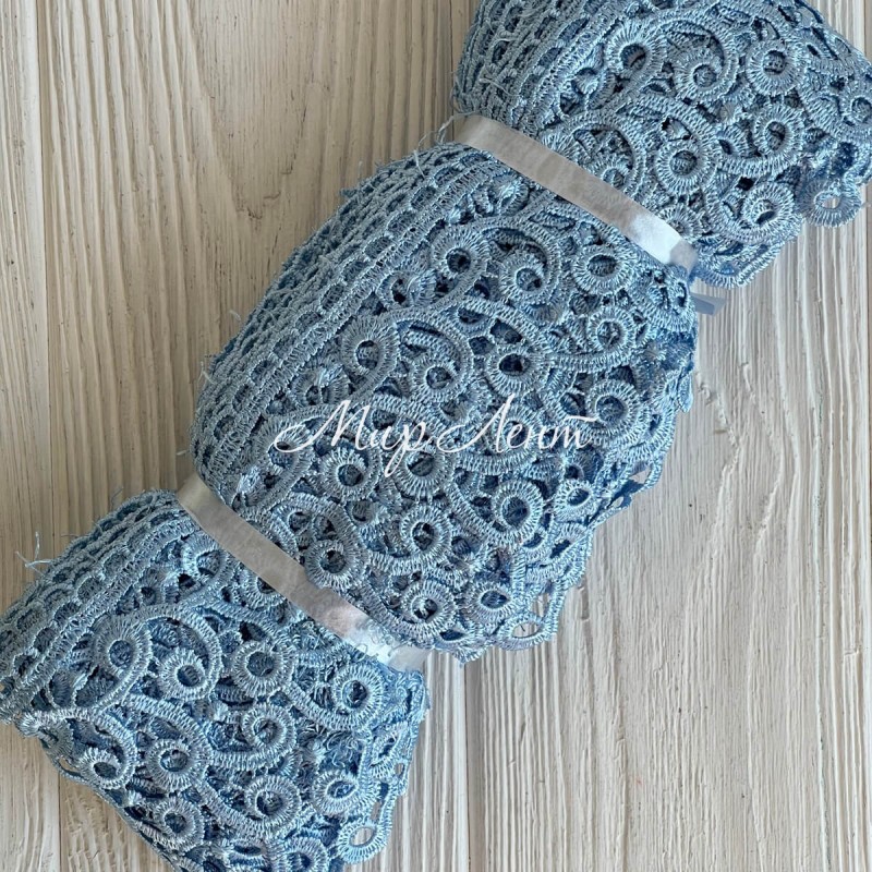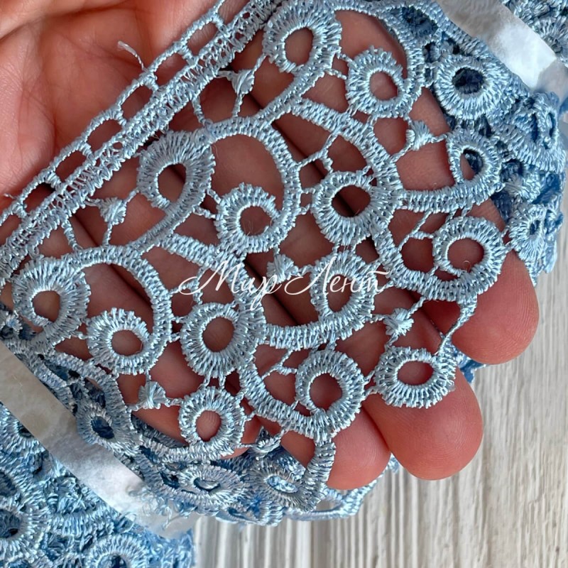 Кружево макраме "Сандра", 7,5 см, голубое, рулон 9 м