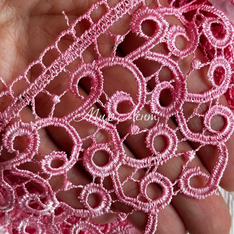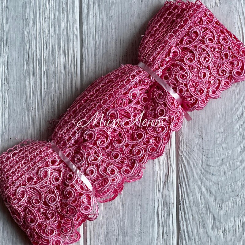 Кружево макраме "Сандра", 7,5 см, насыщенно-розовое, рулон 9 м