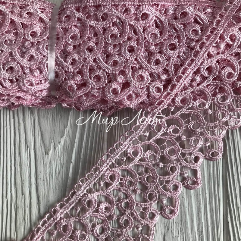 Кружево макраме "Сандра", 7,5 см, розовое, рулон 9 м