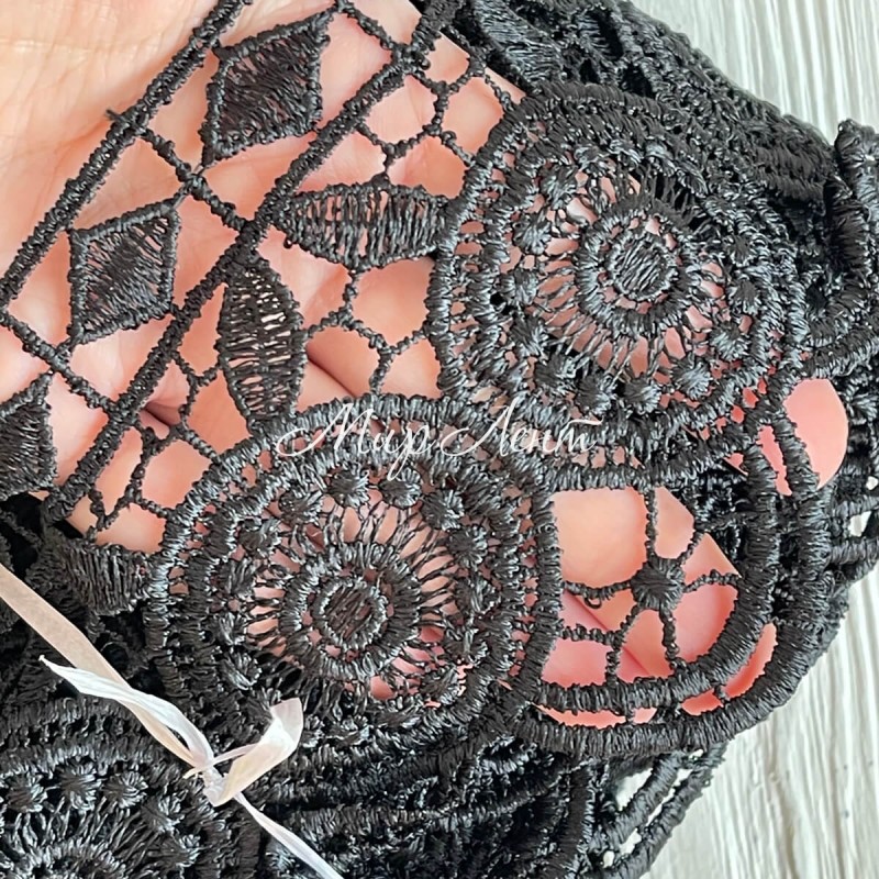 Кружево макраме широкое (KMS-11), 10,5 см, черное, рулон 9 метров
