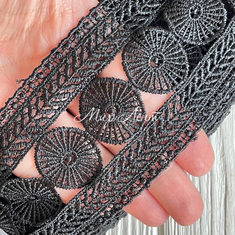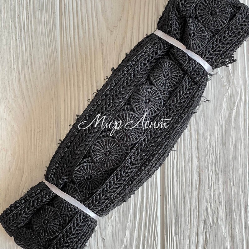 Кружево макраме широкое (KMS-2), 7 см, черное, рулон 9 метров
