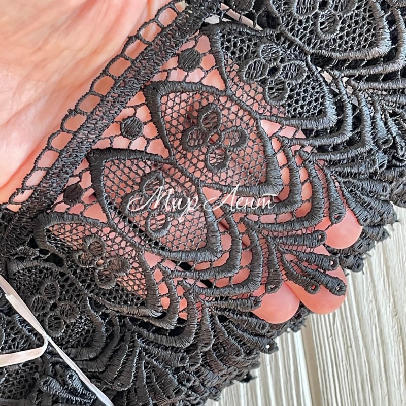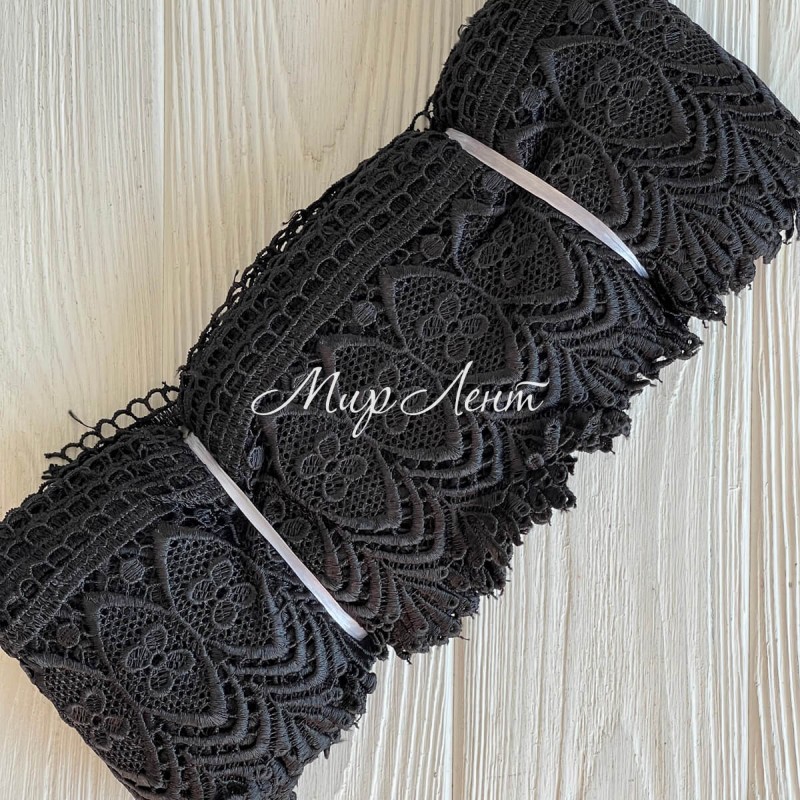 Кружево макраме широкое (KMS-6), 10 см, черное, рулон 9 метров