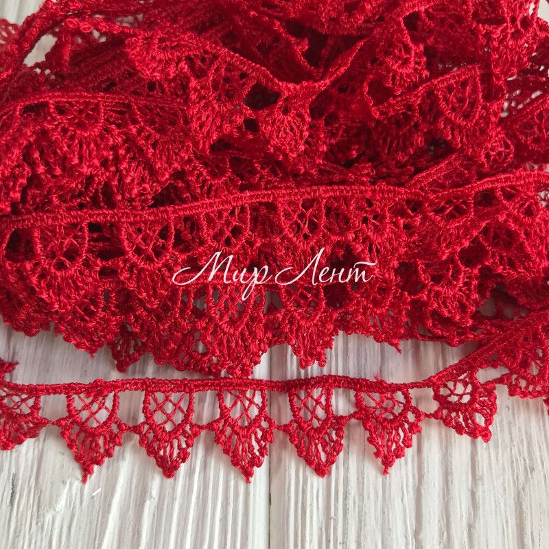 Кружево макраме "Софи", 1,8 см, красное, рулон 9 м