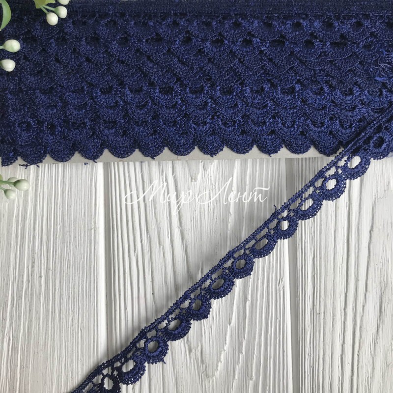 Кружево макраме узкое (TJ-10021), 1,7 см, сапфировый, рулон 13 метров