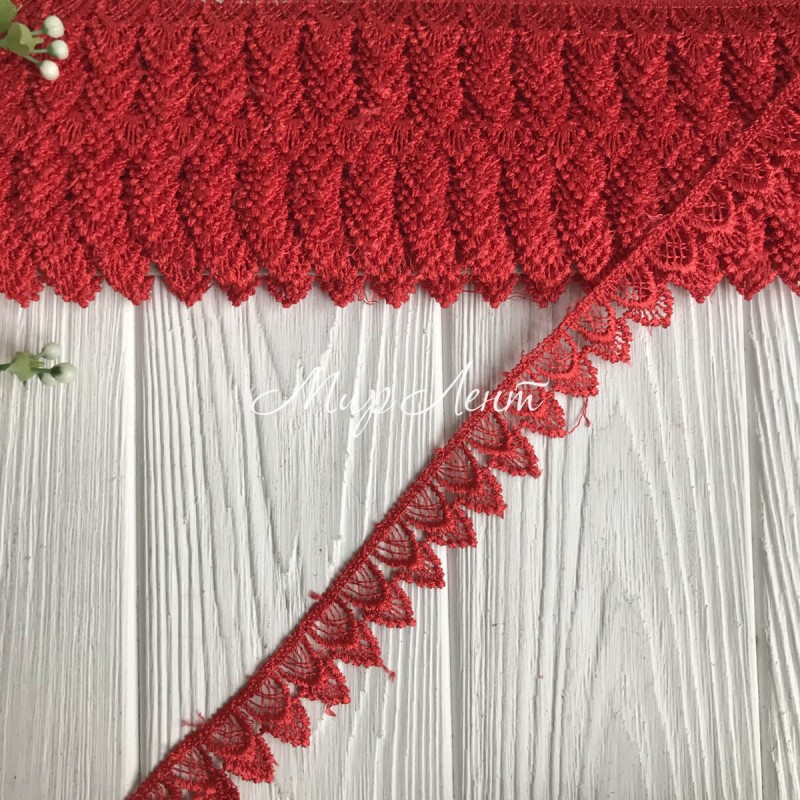 Кружево макраме узкое (TJ-10060), 2,5 см, красный, рулон 9 метров