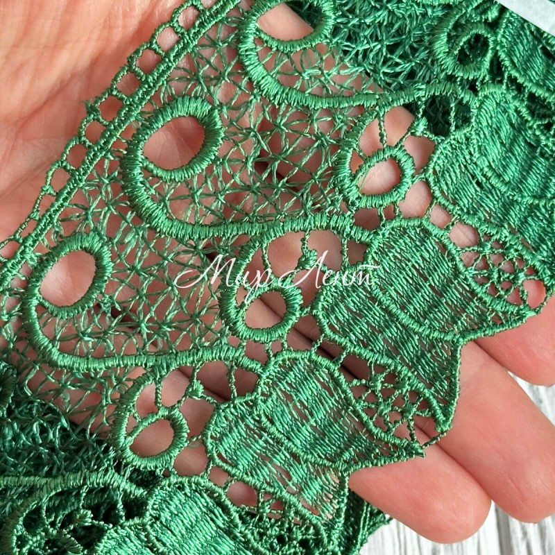 Кружево макраме Тюльпан, 7 см, зеленое, рулон 9 м