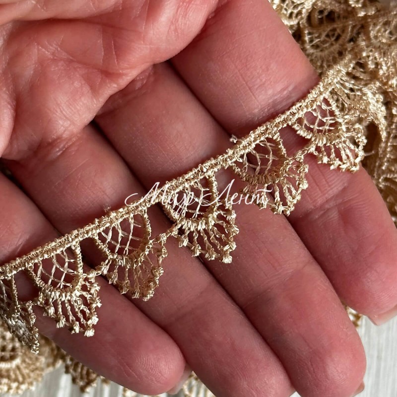 Кружево макраме узкое (TJ-10060), 2,5 см, бежевый, рулон 9 метров