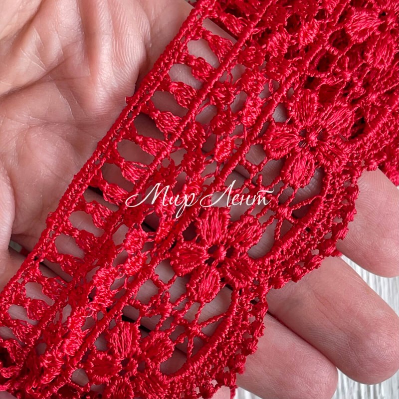 Кружево макраме Ванесса, 5 см, красное, рулон 9 м