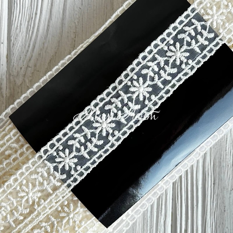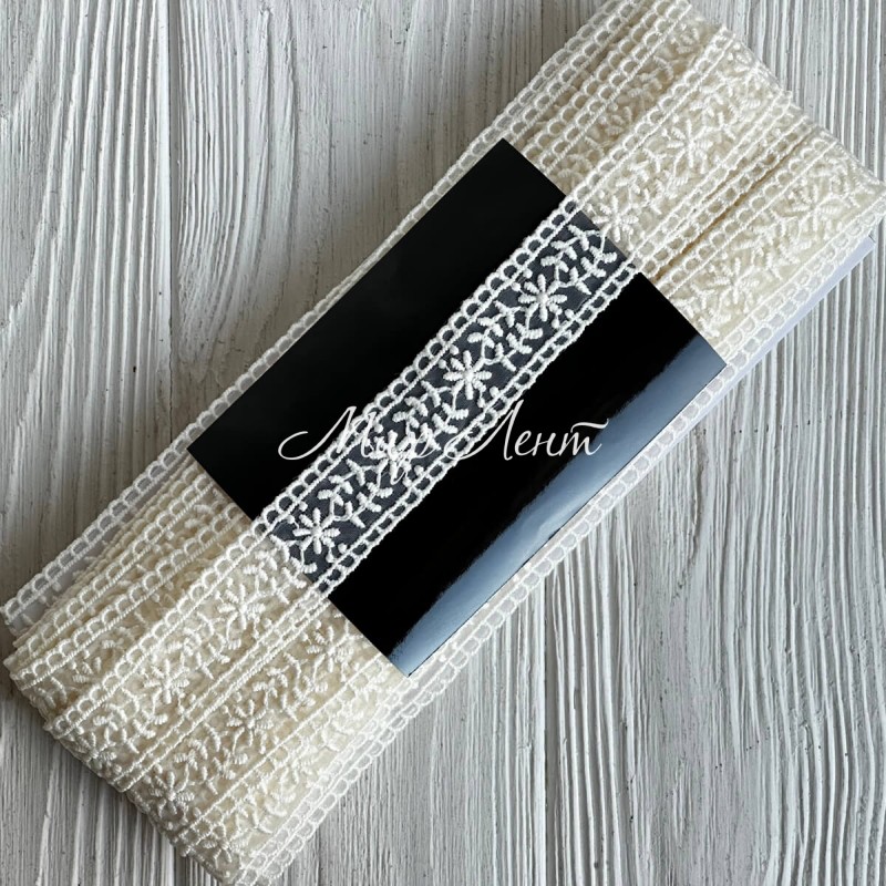 Кружево органзовое (D30104), 2,3 см, молочное, рулон 13 м