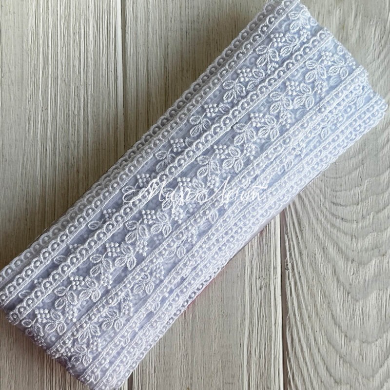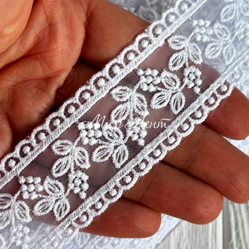 Кружево органзовое (D30114), 3,3 см, белое, рулон 13 м