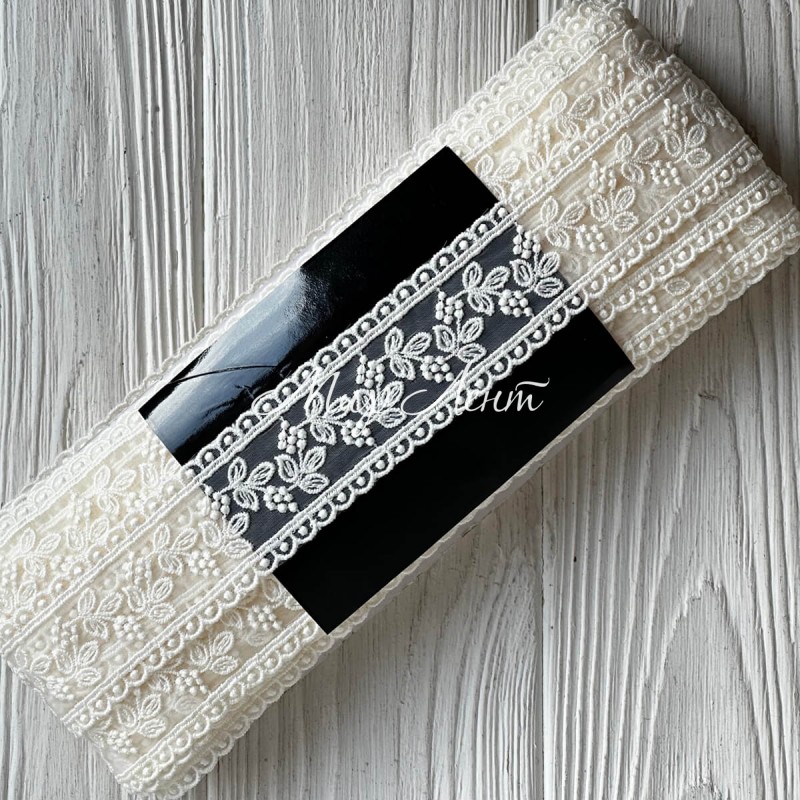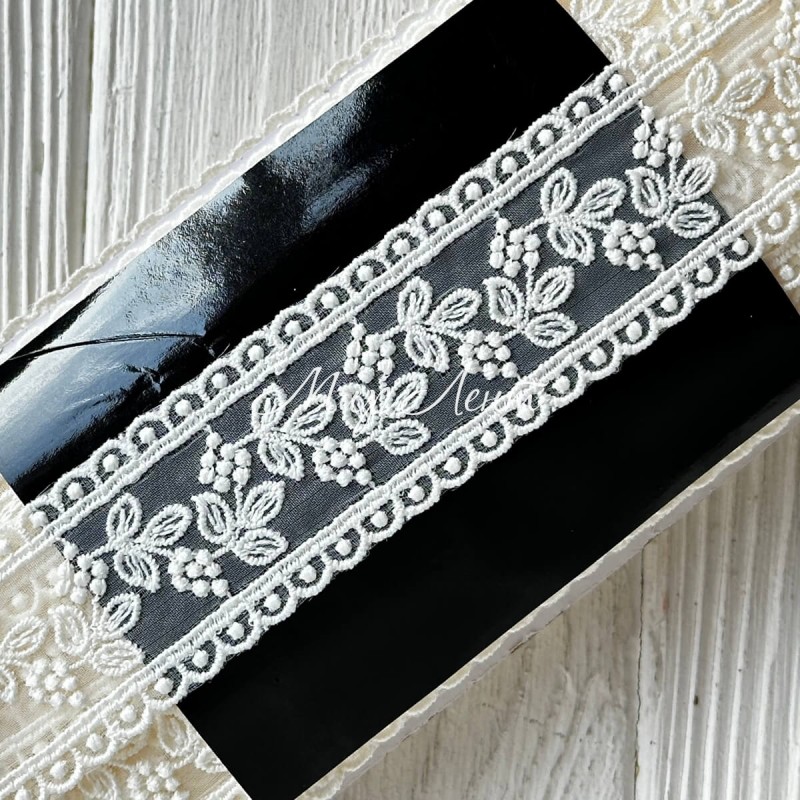 Кружево органзовое (D30114), 3,3 см, молочное, рулон 13 м