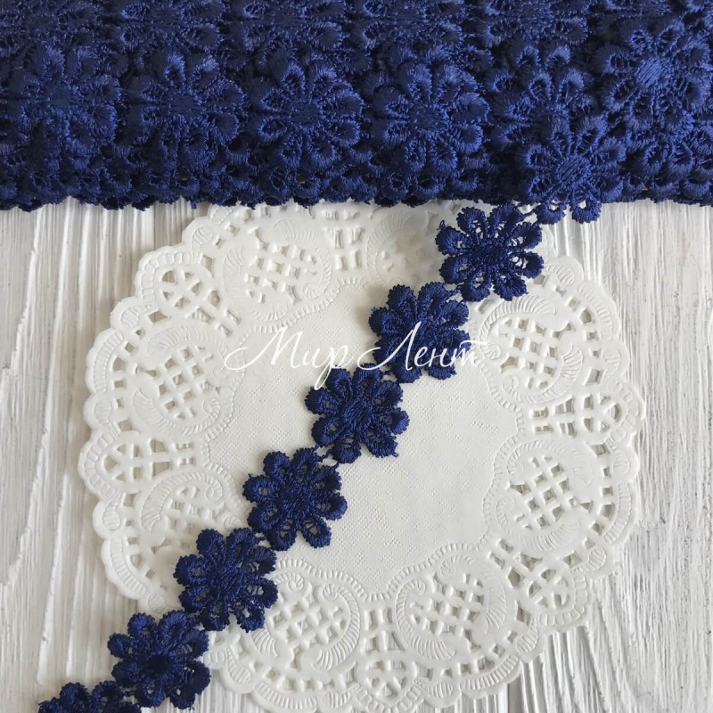 Кружево отрывное цветочек, 2,5 см, сапфировый, рулон 15 ярдов