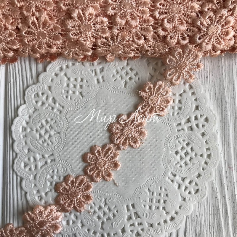 Кружево отрывное цветочек, 2,5 см, персиковый, рулон 15 ярдов