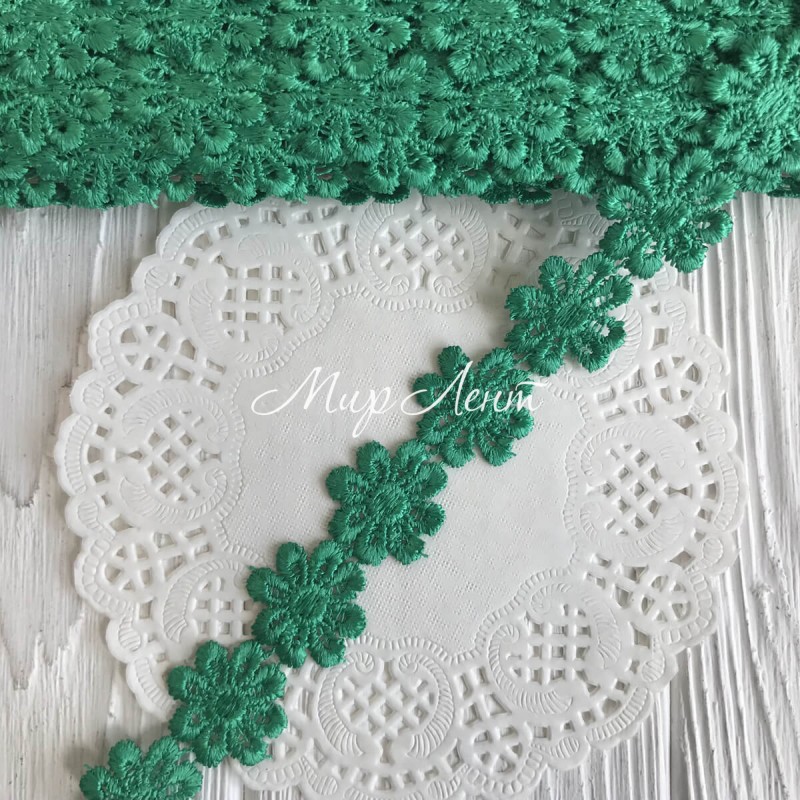 Кружево отрывное цветочек, 2,5 см, зеленый, рулон 15 ярдов