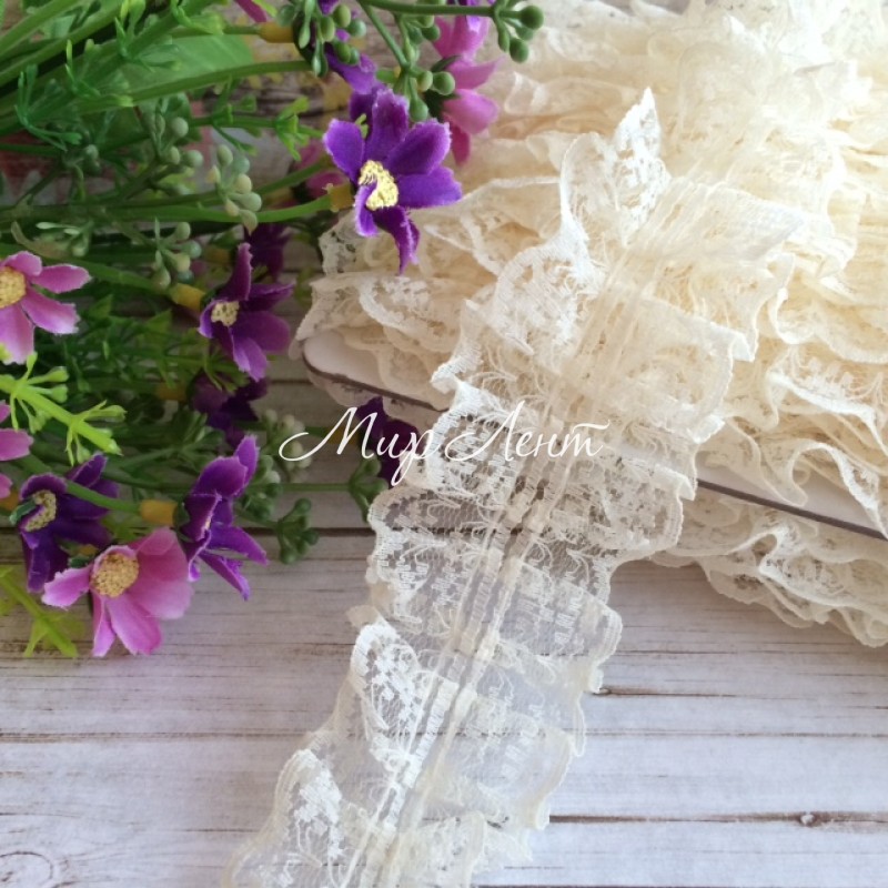 Кружево-рюша, 4 см, молочное, моток 18 м