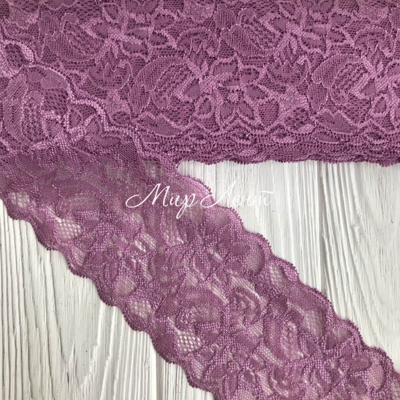 Кружево стрейчевое "Изабель", 8 см, баклажановый, рулон 9 м