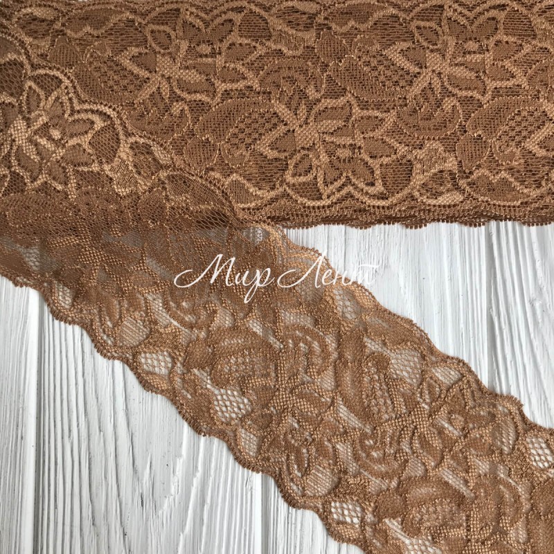 Кружево стрейчевое "Изабель", 8 см, карамельный, рулон 9 м