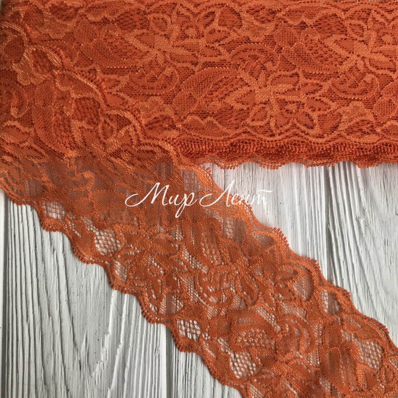 Кружево стрейчевое "Изабель", 8 см, оранжевый, рулон 9 м