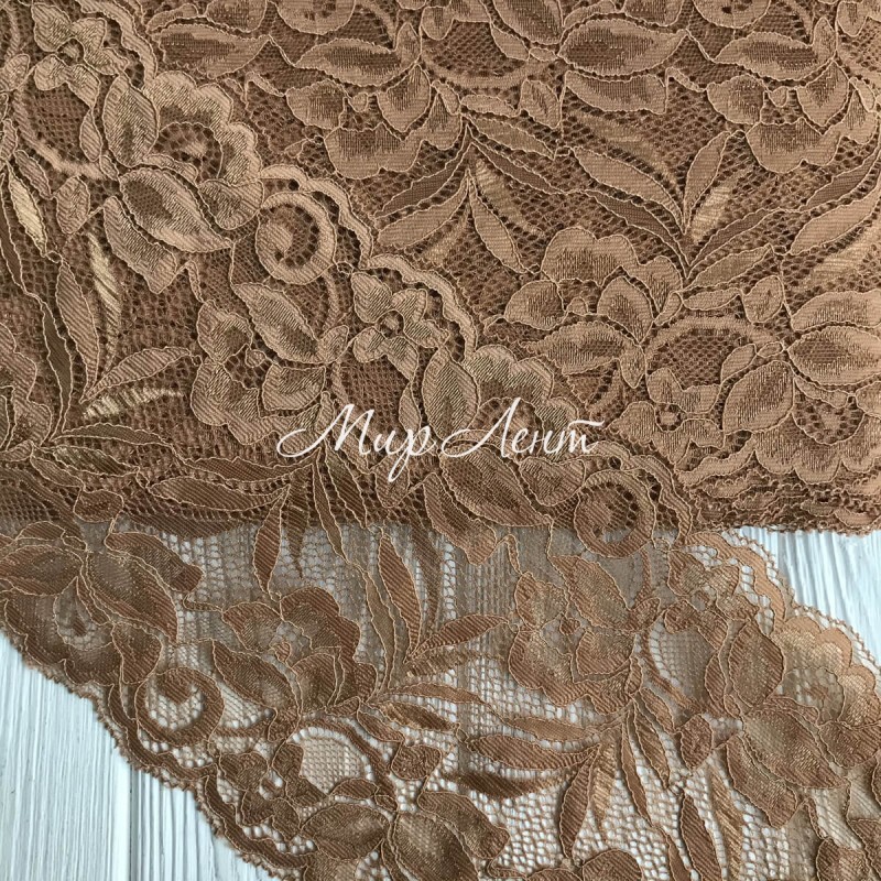 Кружево стрейчевое "Лиана", 15 см, капучино, рулон 9 м