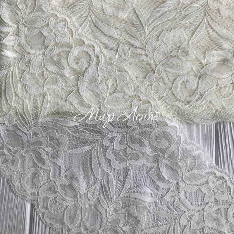 Кружево стрейчевое "Лиана", 15 см, молочный, рулон 9 м