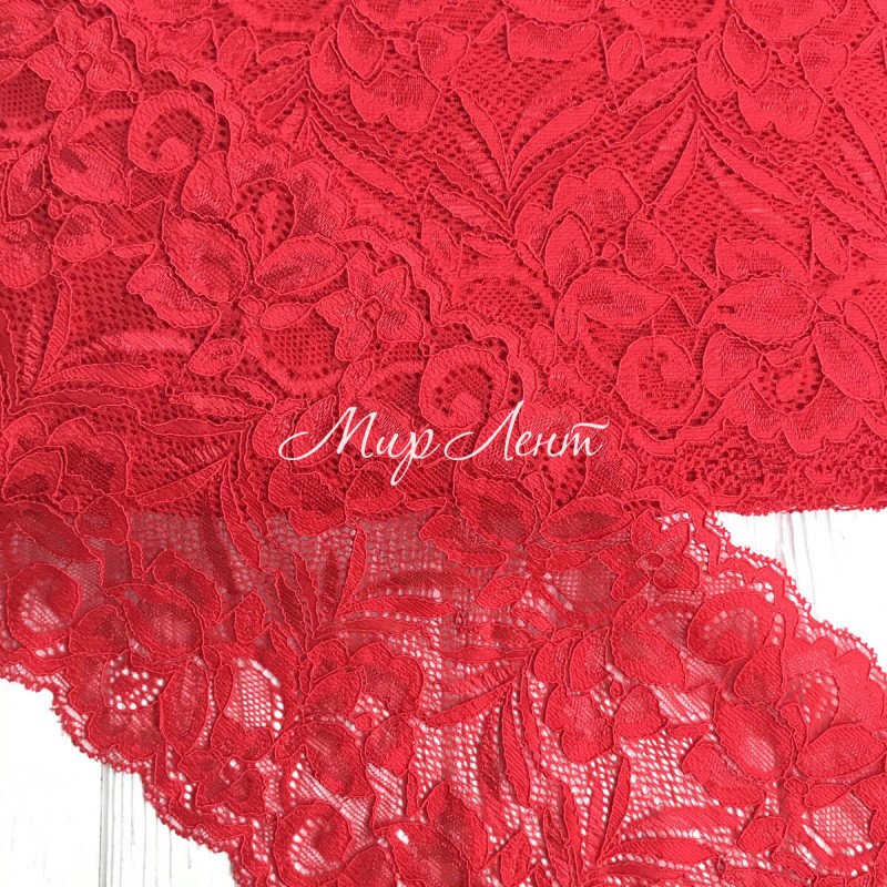Кружево стрейчевое "Лиана", 15 см, красный, рулон 9 м