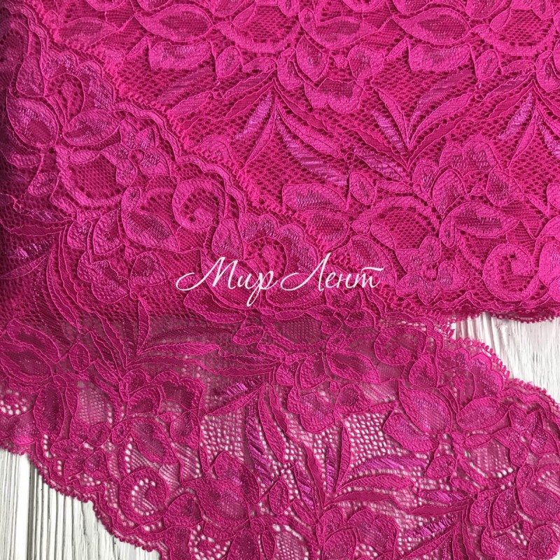 Кружево стрейчевое "Лиана", 15 см, малиновый, рулон 9 м